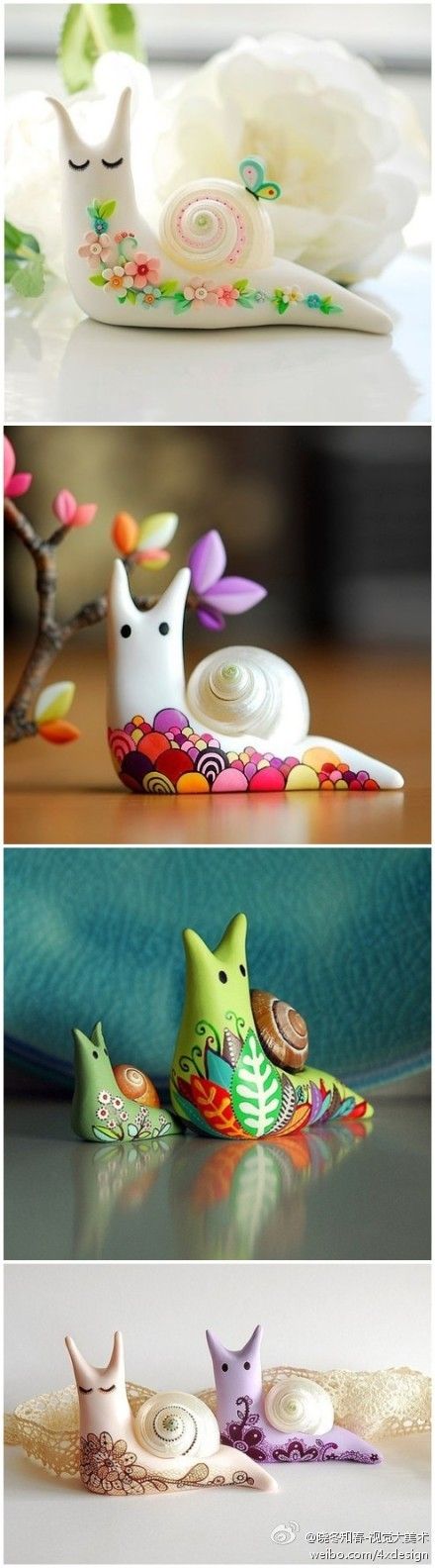Form the clay into the basic body shape (think: slug!) Press in the shell. Let dry. Decorate as desired.