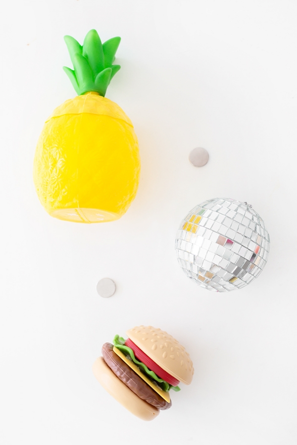 • 4 plastic milk bottle caps and 2 beer bottle caps