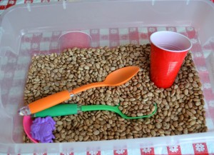 Kids will spend hours in front of their ‘bean box’, scooping and pouring.